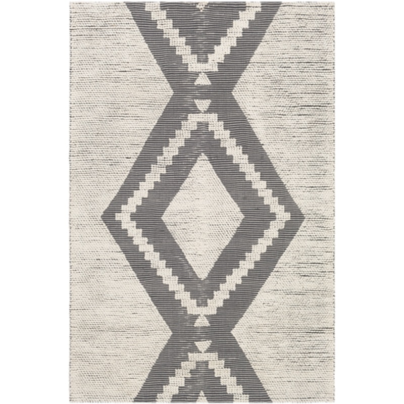 100% Recycled PET YarnHand WovenNo PileThickness: 0.78"High/LowColors: Black, IvoryTPX: 19-0201, 11-0602Made in India