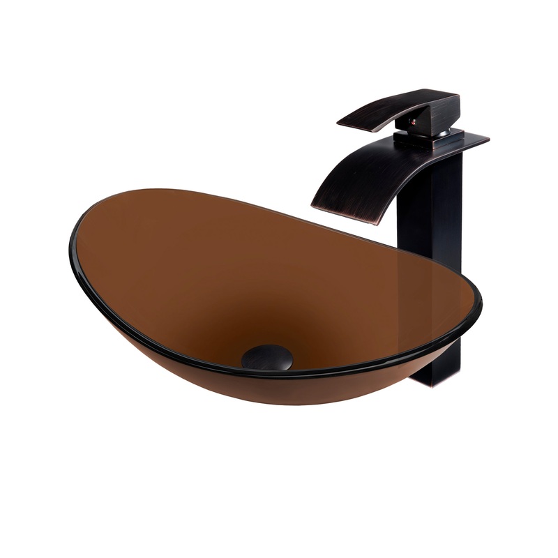Create your own bathroom oasis with Novatto's clear brown glass vessel and oil rubbed bronze waterfall faucet. This clear brown vessel sink will go well with most decor and counter. Novatto uses advanced technology, including computerized glass processing