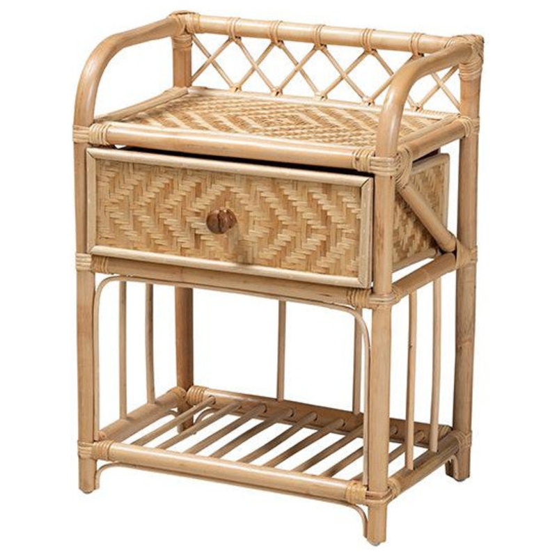 Imbue your bedroom with a touch of exotic flair while with the Kobie nightstand. Made in Indonesia, this bohemian inspired piece is expertly crafted from natural rattan. The drawer and ophen shelf provide space to organize your bedside while reserving the tabletop for nightly use. The Kobie will arrive fully assembled and features an openwork design that is lightweight and enables light to flow naturally throughout the room. A fantastic finishing touch for any bedroom arrangement, the Kobie nightstand is sure to rejuvenate your nighttime routine.Due to the nature of the natural materials used in this product, it may have variations in areas such as, but not limited to, color, pattern, grain and texture. The hair-like strands of rattan/rattan-fiber are common due to nature of the material.