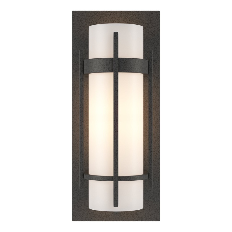 A clean, sleek design that evokes dreams of the Far East is the hallmark of our Banded Collection. True to the collection’s name, two handcrafted steel bands, intersected by a bold, vertical steel bar, encircle the glass and fasten to a textured, forged-steel mounting plate.