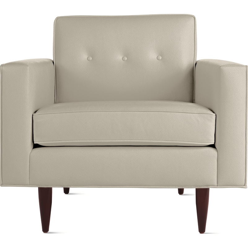 A DWR best-seller for over a decade, the Bantam Collection (2004) celebrates the soft, less-machined brand of modernism that arose in the United States in the 1930s. Delivering physical comfort as well as aesthetic pleasure, the entire frame is lightly padded and finely upholstered with a fitted back and a single row of button tufting. Matching piping along the seams reinforces the clean lines of Bantams frame. Tapered solid wood legs lend visual lightness.