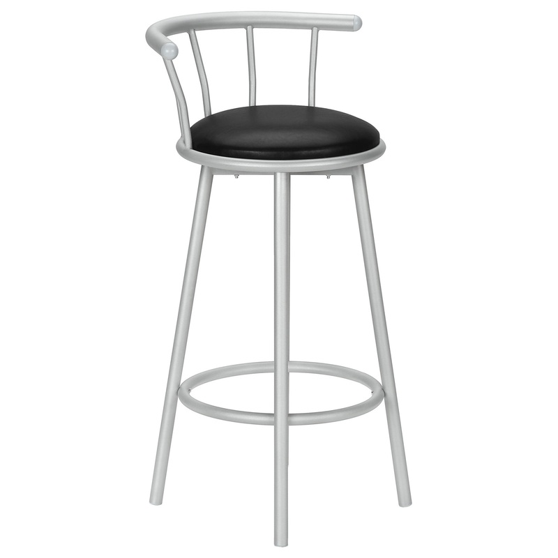 Introducing these stylish and comfortable set of 2 swivel barstools; a perfect addition to any home bar or kitchen counter. This 2-piece set is crafted from sturdy grey metal and cushioned seats upholstered in black leather look fabric; adding a contemporary element to your dining and entertainment space. At 37″ H; these bar height stools feature a curved low back for support and bottom footrest for added comfort. Each bar stool is easy to assemble with full illustrated instructions included. Best of all; they come with a 2 year limited warranty against manufacturer’s defects for worry-free use. Add it to your home and enjoy the fashionable style and ultimate comfort of these barstools.