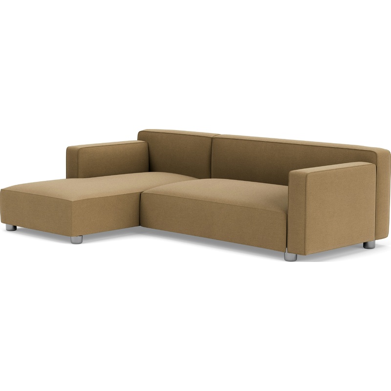 The Barber Osgerby Asymmetric Sofa (2013) by London-based duo Edward Barber and Jay Osgerby for Knoll harmoniously blends artistry with comfort. Its elegant architectural profile and gently curved lines are accentuated by subtle stitching detail. Plush cushioning topped with high-density memory foam ensures sink-in softness. Its integrated chaise is perfect for large living spaces; cast-aluminum legs ground its expansive form. The foot is really the icon of the sofa, says Osgerby. It fits between each one of the arms and the seats, which are the architectural building blocks. Made in the U.S.A.