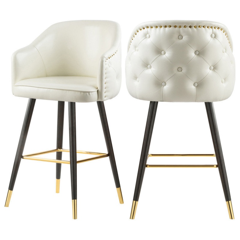 Traditional beauty comes to your home counter area with this bosa vegan leather counter stool. The rich, soft white vegan leather looks so real, folks will really think it is. The chair rests on matte black metal legs and has a gold footrest with gold caps on its tips for a modish finish. Deep tufting on the back of the seat adds a classic sense of refined style.