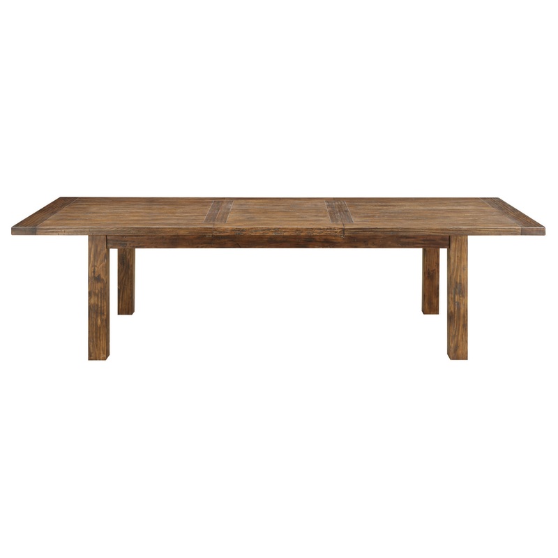 The Barrera dining table is beautifully weathered yet built to last, delivering rustic elegance to your dining space, featuring self-storing butterfly extension leaf and straight timber legs -Exemplifies rustic style in a rustic pine color palette, bringin