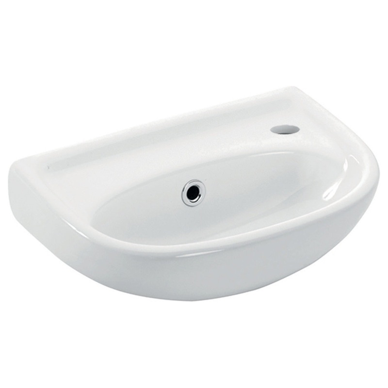 Basic 4000.01L by WS Bath Collections, 15.5″ L x 9.8″ W x 6.1″ H Bathroom Sink, Wall Mount Installation, With Overflow, With One Faucet Hole, Basin to the Left of Faucet, in Ceramic White