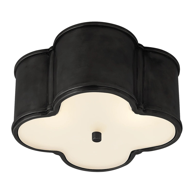 The Basil Small Flush Mount is a stylish classicdesign with a frosted glass shade and clover-shaped frame, available with optional clear glass rod lining.The frosted glass at the base of the fixture will make your space glow. This is a beautiful accent piece in any of thesix available finish combinations. TheBasil Small Flush Mountis part of theAlexa Hampton collection.