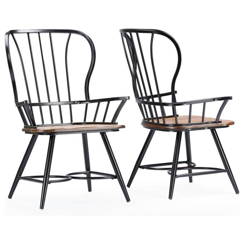Celebrate your dining experience unfettered via the open feel of our Longford wood and metal vintage industrial dining arm chair. Ingeniously combining wood and metal construction, this dining chair features a vintage-industrial vibe yet makes a contemporary statement all the same. The black-metal vertically-lined back expresses an airiness while the dark-walnut-finished wood seat conveys warmth.