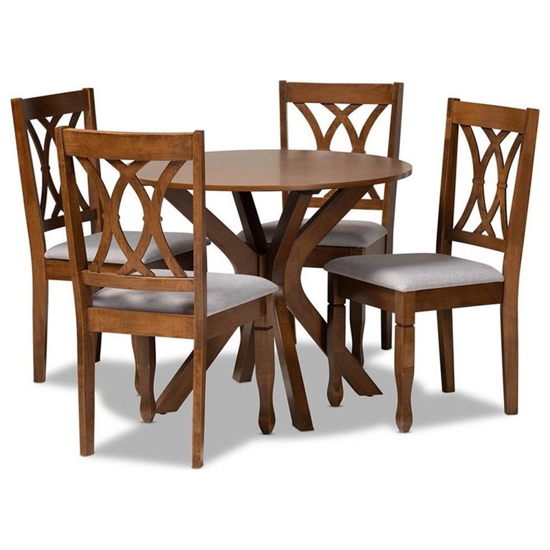 Baxton Studio Maya Upholstered and Walnut Brown Finished Wood 5-Piece Dining Set – Transitional – Dining Sets – by Homesquare
