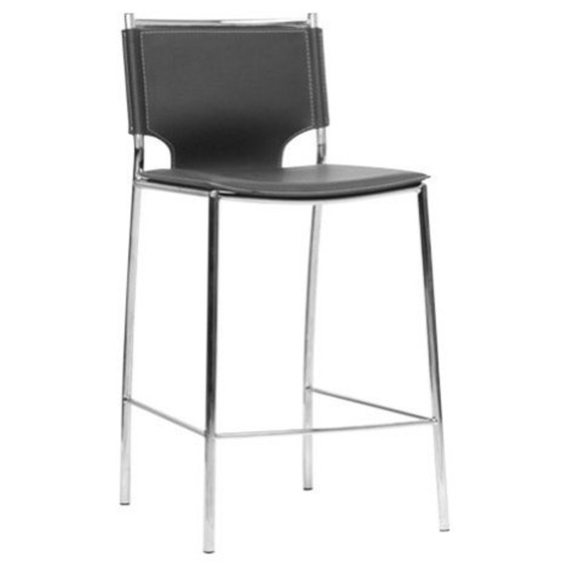 You will enjoy the clean design of this contemporary leather counter stool. The shine of the chrome-finished steel frame contrasts beautifully with the matte black bonded leather of the seat, both hallmarks of the Montclare design. The edges of the leather