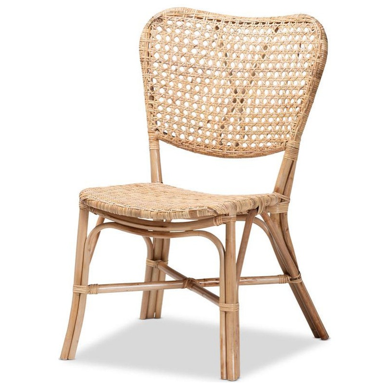 The Nadira dining chair presents welcoming, casual vibes to reframe the modern dining room. Made in Indonesia, this chair is comprised of a natural rattan frame featuring woven embellishments. Its bent seat and angled backrest offer soothing comfort for ev
