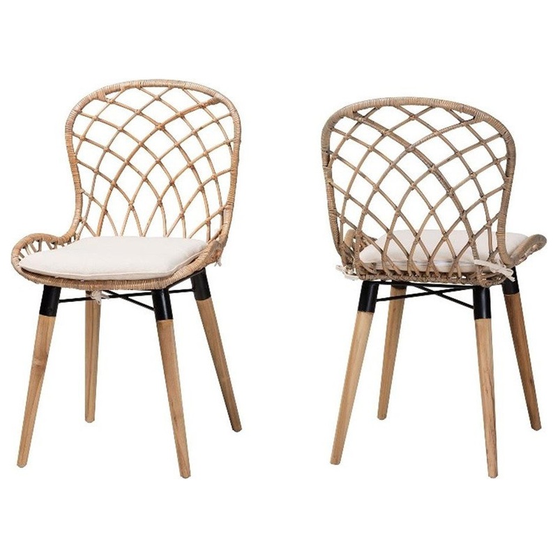 Discover a quality of bliss in your home with the exotic charm of the Sabelle dining chair. Made in Indonesia, this Boho style piece consists of a sturdy wood base topped with a handcrafted rattan seat. Its rounded backrest is interlaid with slim rattan rods for a serene display while a plush, fabric upholstered seat cushion offers a sumptuous embrace. The Sabelle requires assembly and utilizes angled legs connected by a crisscross base for excellent stability and support. Imparting a quality of carefree elegance, the Sabelle dining chair elevates the feel of any arrangement.