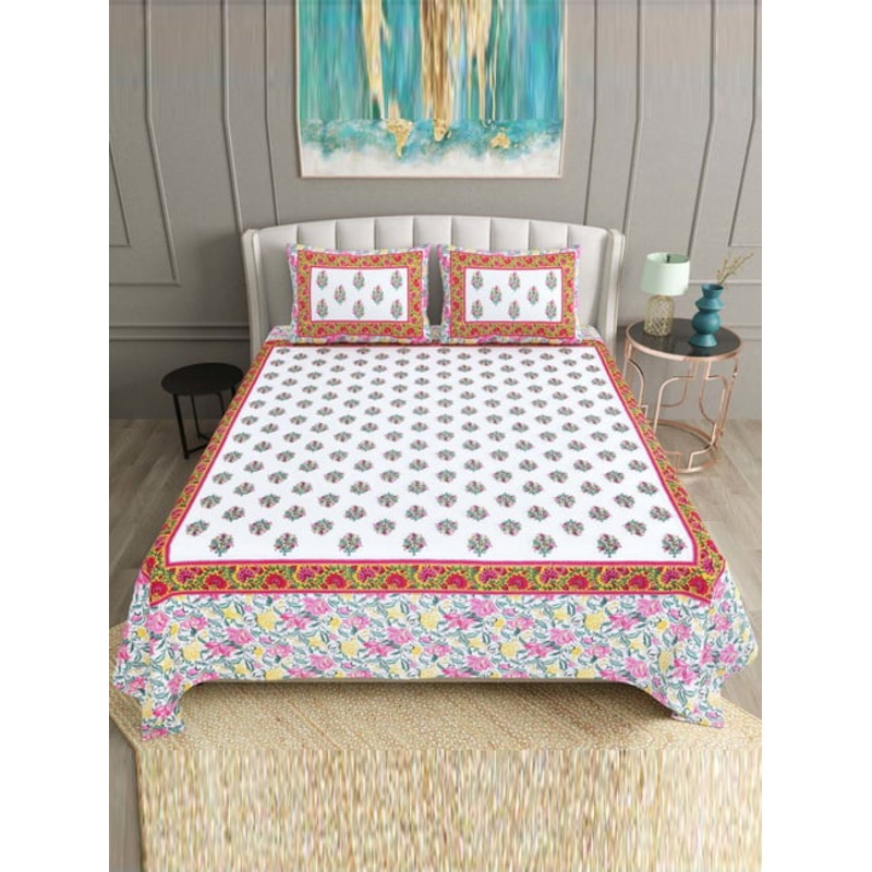 Warm up the environment of your room with this set of 1 king bedsheet and 2 pillow covers from Bella Casa. It is crafted with care using premium-quality cotton. With a thread count of 180, it ensures endearing comfort to your tired nerves.