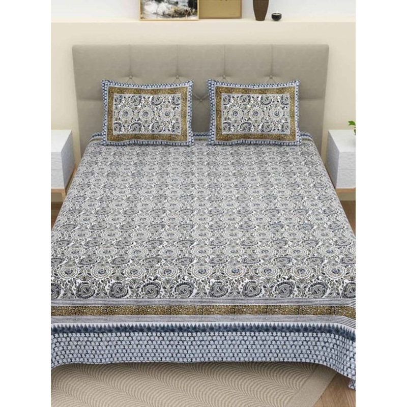 Transform your bedroom into a tranquil oasis with this double bed flat sheet and pillow cover set from BELLA CASA. The intricate print adds a touch of elegance and sophistication to your bed, while the soft and comfortable cotton ensures a restful night's
