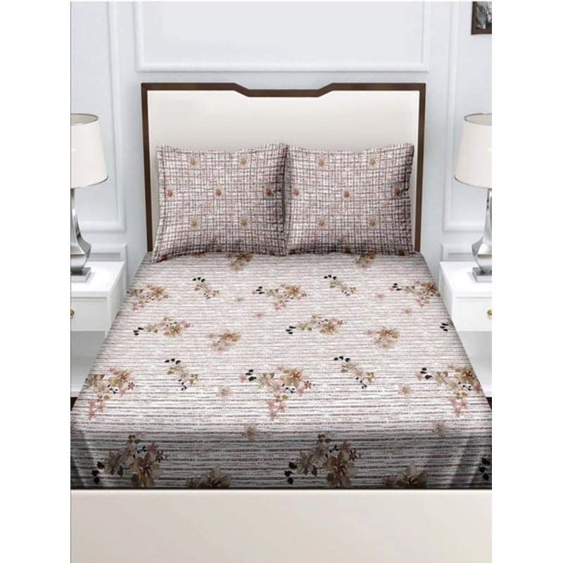BELLA CASA Genteel Floral Brown 180 TC Cotton Bedsheet with 2 Pillow Covers