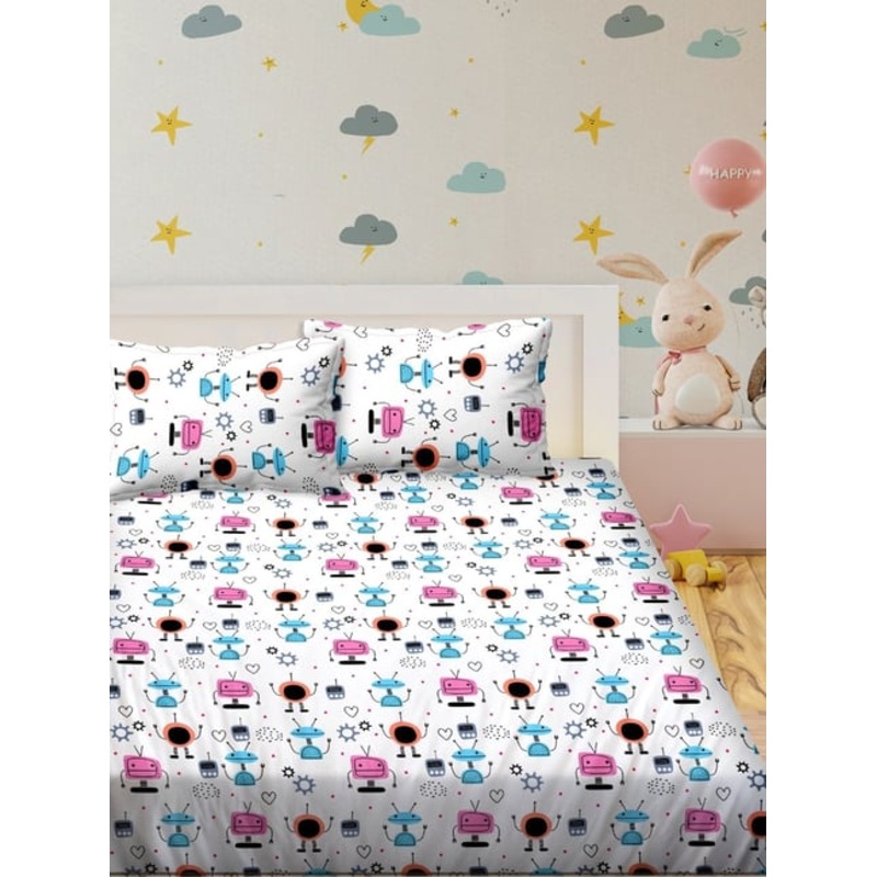 BELLA CASA Kidz Kindom Printed Multicolor 180 TC Cotton King Bedsheet with 2 Pillow Covers