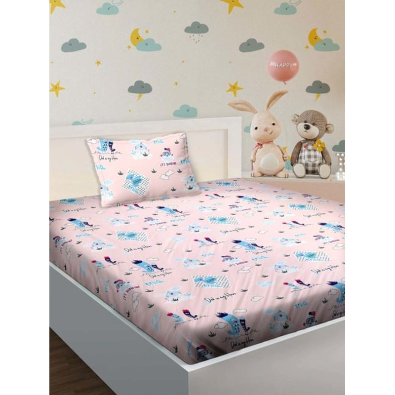 BELLA CASA Kidz Kingdom Printed Pink 180 TC Cotton Bedsheet with 1 Pillow Cover