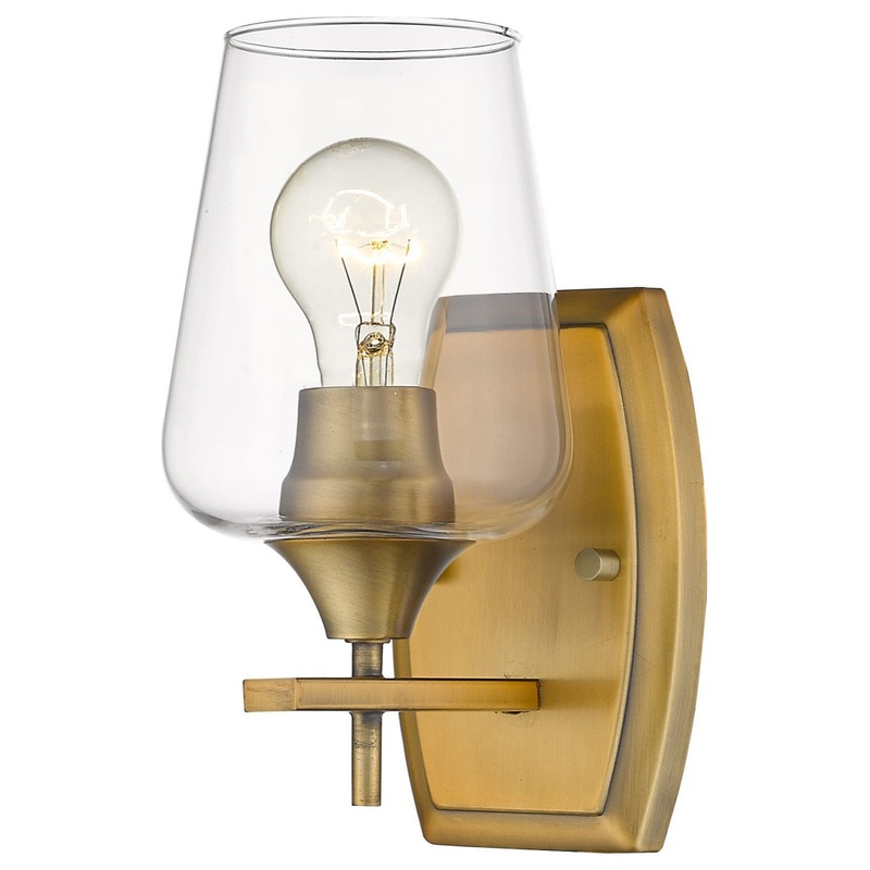 Features Constructed of steel Fixture includes a clear glass shade (1) 100 watt maximum medium (E26) bulb required Dimmable with compatible dimming bulbs Mountable in different orientations CUL and ETL rated for damp locations Dimensions Height: 9-1/2″ Width: 5″ Extension: 6-1/2″ Product Weight: 3 lbs Electrical Specifications Number of Bulbs: 1 Max Watts Per Bulb: 100 watts Bulb Base: Medium (E26) Bulb Included: No