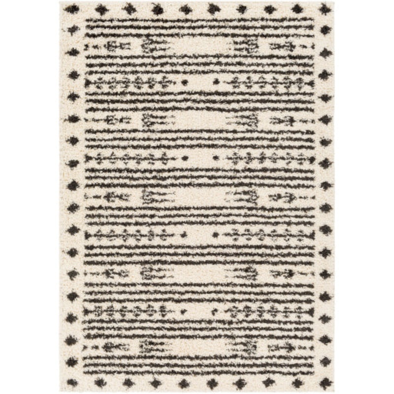 100% PolypropyleneMachine WovenPlush PileThickness: 1.18"Colors: Black, CreamTPX: 19-3918, 11-4300Made in Turkey