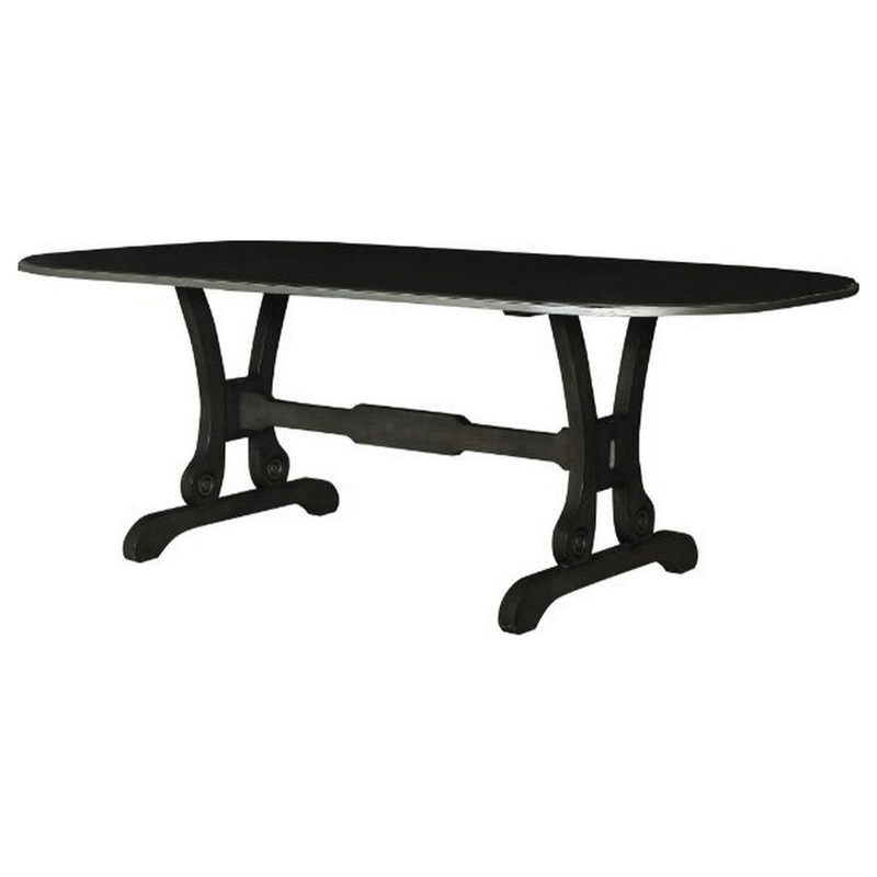 Enjoy sophisticated dining by bringing in this transitional style inspired Dining Table, which comes with a striking silver trim accent. Incorporated with a rounded rectangular tabletop, it is constructed sturdily from solid wood and composite wood frame. The charcoal gray tone finish accentuates its overall appeal.