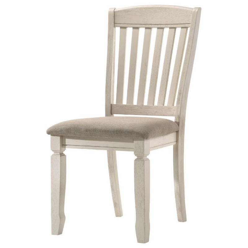 Depicting a modern coastal style, this antique white finished two piece dining side chair set is sure to add a unique character to your dining space. Featuring padded seats and slatted backrests, these chairs are made from highly durable rubberwood. Supported on chamfered front and flared rear legs, these chairs go perfectly well with a wide variety of decor styles