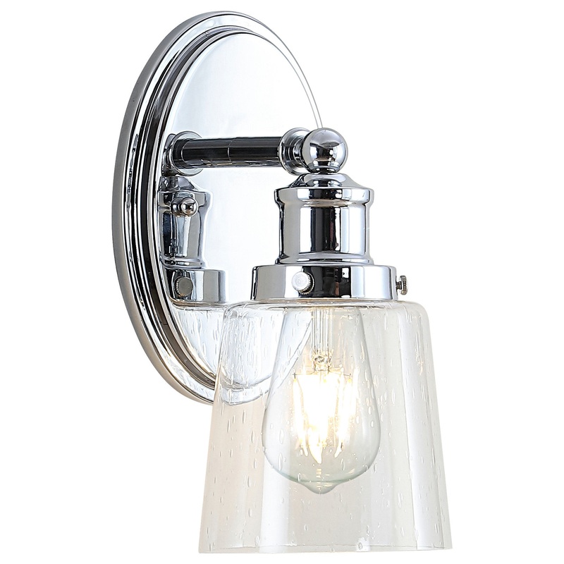 Elevate your urban apartment, cottage or rustic with our versatile take on a classic wall light. The industrial Edison-style LED bulb casts a warm glow, providing plenty of light. A seeded glass bell shade adds elegant vintage style to your bath vanity, or above a kitchen sink.