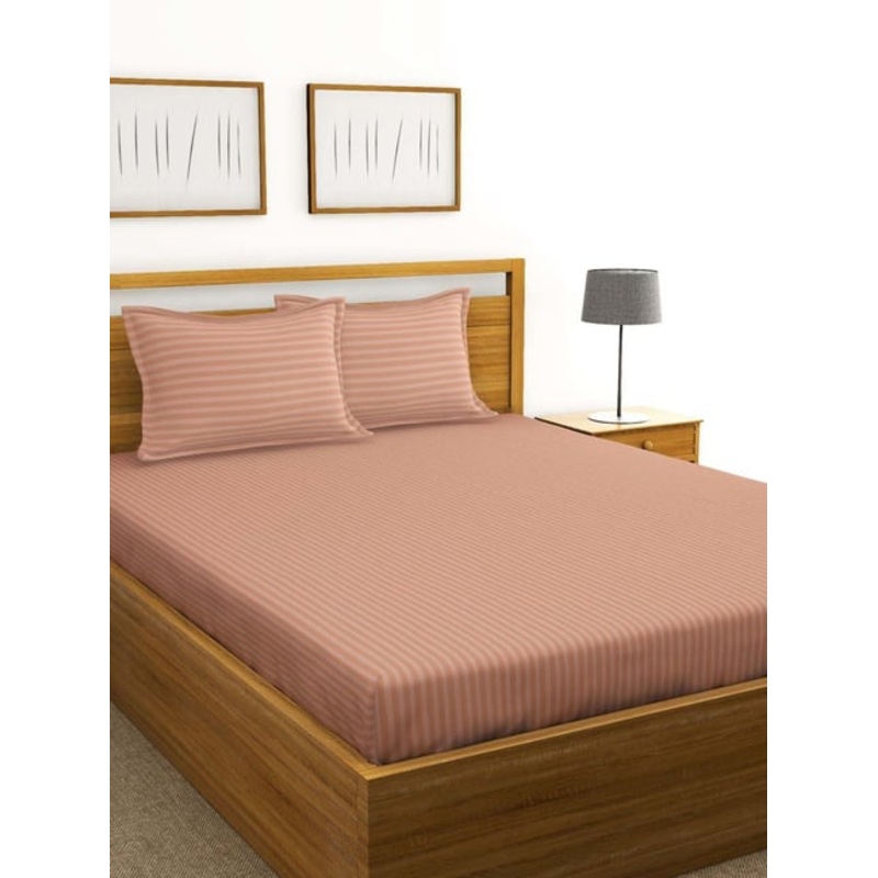With the feel of a five-star hotel bed, this set of 1 bedsheet and 2 pillow covers from the Hilton collection by Bianca is made from double-mercerized cotton. This beautiful bed set adds charm to your bedroom. Made for your room, the set is easy to maintain. It has a TC of 210.