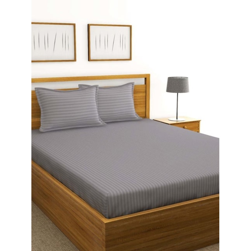 With the feel of a five-star hotel bed, this set of 1 bedsheet and 2 pillow covers from the Hilton collection by Bianca is made from double-mercerized cotton. This beautiful bed set adds charm to your bedroom. Made for your room, the set is easy to maintain. It has a TC of 210.