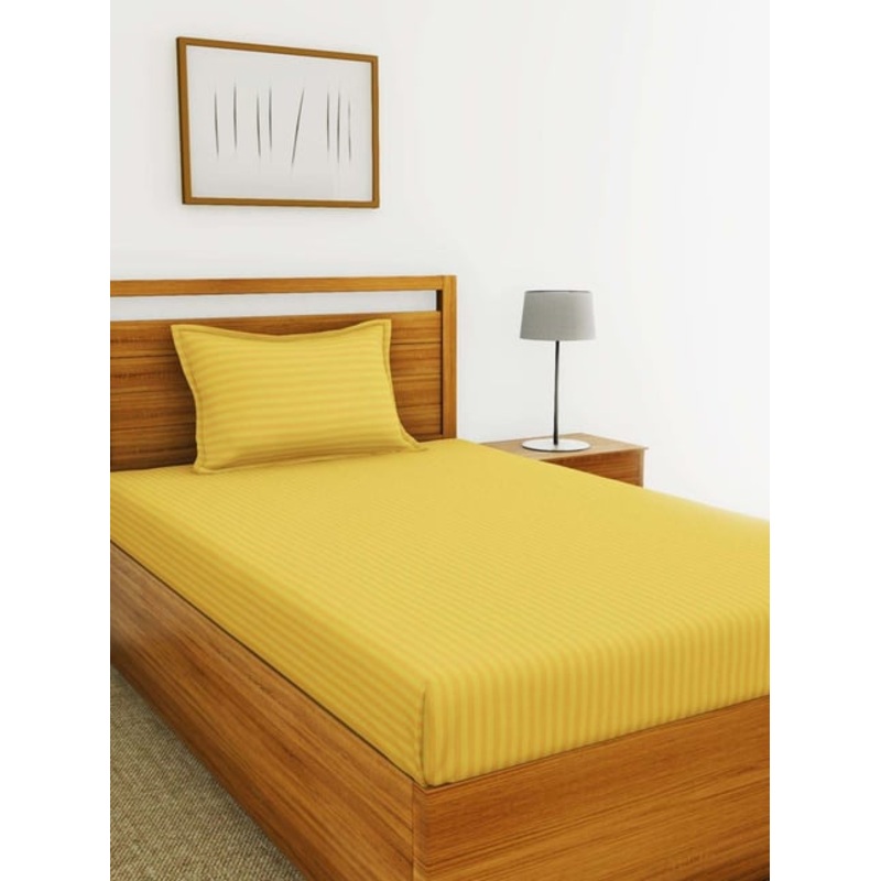 With the feel of a five-star hotel bed, this set of 1 single bedsheet and 1 pillow cover from the Hilton collection by Bianca is made from double-mercerized cotton. This beautiful bed set adds charm to your bedroom. Made for your room, the set is easy to maintain. It has a TC of 210.