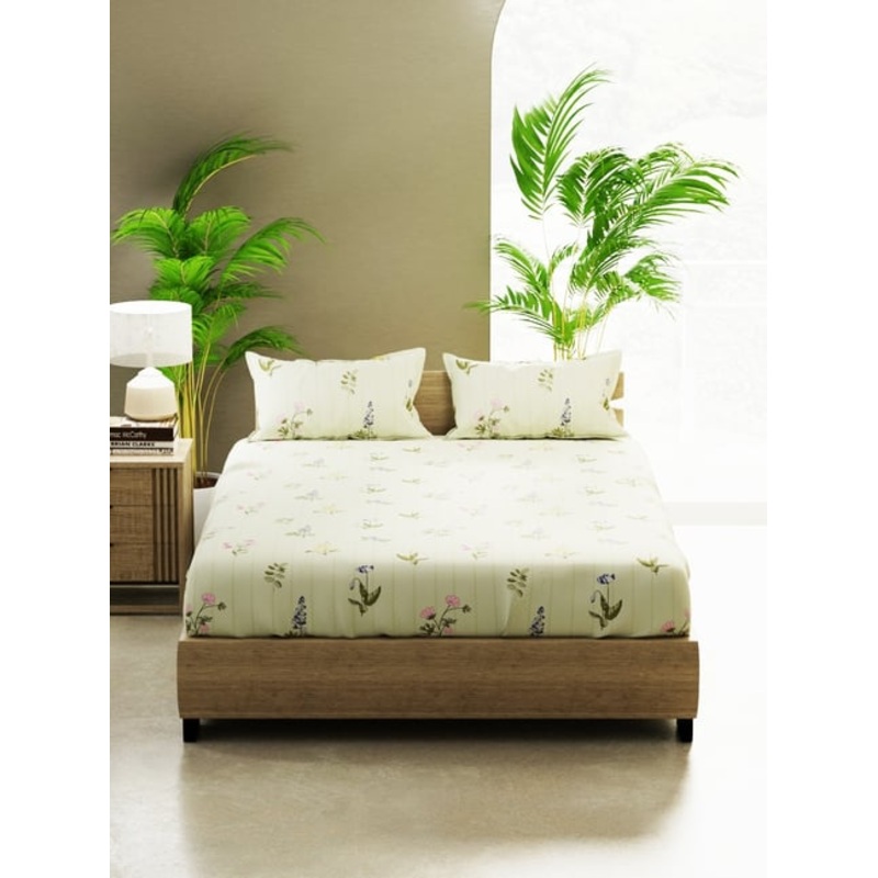 Enhance the beauty of your bedroom interiors with this 100 percent cotton double bedsheet. It extremely comfortable and super soft to touch. Recommended for delicate skin to avoid any rashes. It will comfortably fit your king size mattress. It includes two pillow covers. Machine washable and easy to maintain.