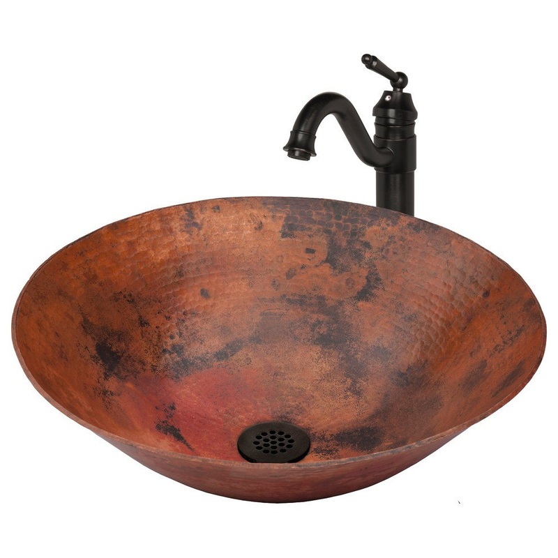 Copper has a living finish and its patina will continue to develop character over time, meaning it will usually become a richer, darker color. The patina creates a unique look of complementing dark tones. Made with the highest standards of quality and creative design, Novatto sinks add art and function to any bath or powder room. Due to the handcrafted nature of this product, it will vary in appearance, finish, texture, hammering and other details. Dimensions may vary up to 1/4-inch.