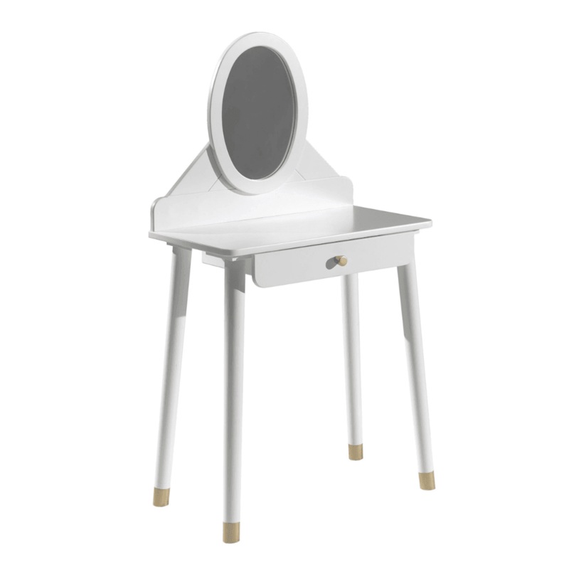 A Billy gyerek btorok egyik kiemelked tagja ez az elegns, s praktikus fslkd asztal. Egy fikkal, ovlis tkrrel, vkony, hossz lbakkal s arany szn rszletekkel rendelkezik. Letisztult s elegns fehr szne miatt knnyen alkalmazkodik brmilyen enterirhz, s dekorcihoz. Mrete 70x40x128.7cm.