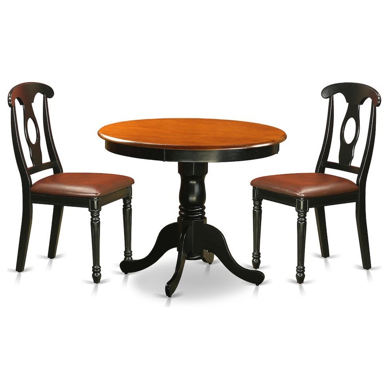 -This 3 piece dinette set Includes dining table and 2 faux leather seat dining room chairs finished in Black.