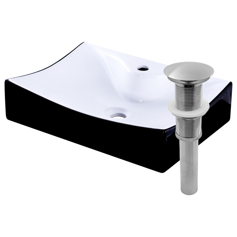 Timeless colors. Black and White. Add a touch of contemporary flare with this refreshing and stylish ceramic sink from Novatto. The outside edge is enriched in a rich, glossy black on all three sides while the inside and back are a bright glossy white. Stylish sloped corners make this sink a focal piece while the extra sink width makes it fully functional for washing hands. Combining quality and design to each ceramic sink makes it a seamless fit into any bath design. As an industry leader in bathroom vessel sinks, Novatto uses advanced technology to produce beautiful vessel sinks with unmatched structural integrity and longevity.