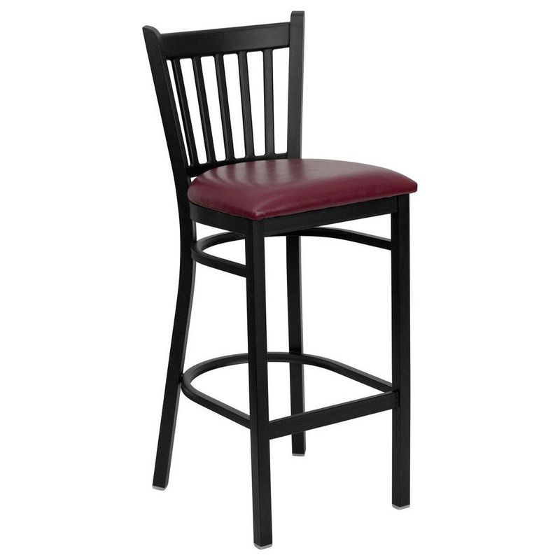 Create a first-rate dining experience by offering your patrons great food, service and attractive furnishings. The metal barstool with burgundy vinyl upholstered seat is a popular choice for furnishing restaurants, pool halls, lounges, bars and other high