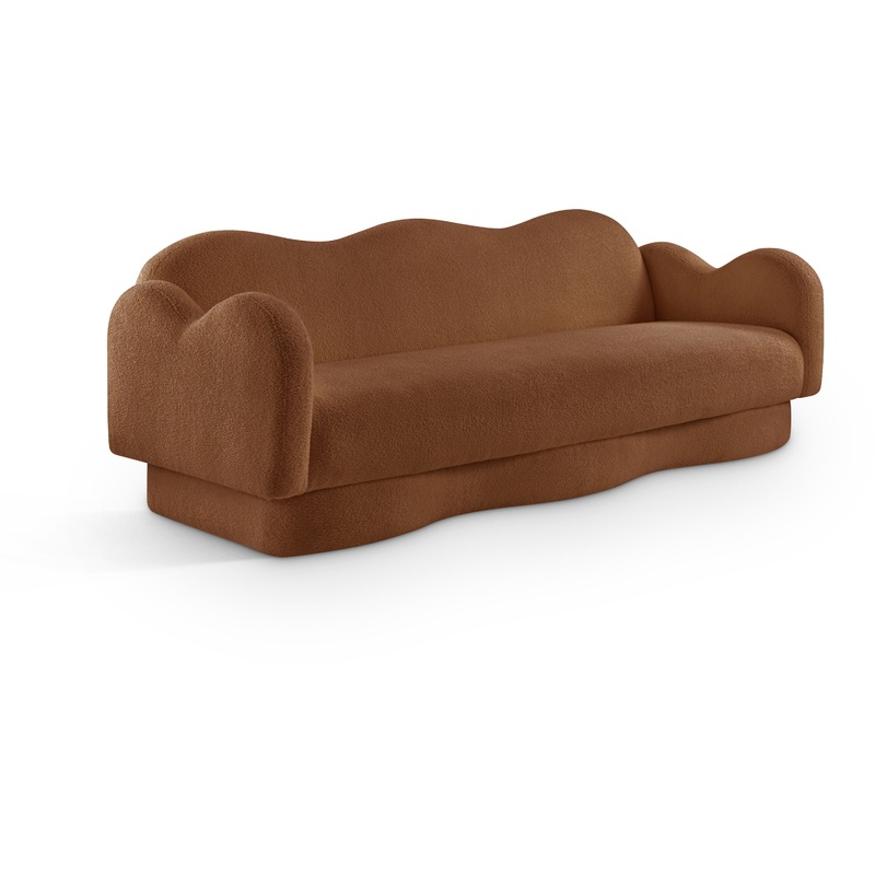 Elevate your space with the Bloom sofa, upholstered in soft saddle faux shearling teddy fabric. This beautifully crafted sofa combines modern design with a unique curvy back and base, making it both a stylish and comfortable addition to any room. Designed