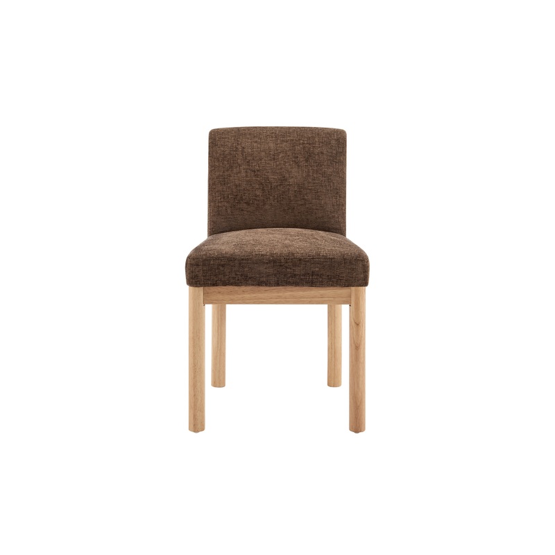 Create a modern ambiance by adding a touch of charming elegance to the space. Incorporating the Bloomfield chair style infuse a sense of calm and nature. In low-height back, decorated with soft, chenille fabric in Dark Brown tone and natural finish frame.