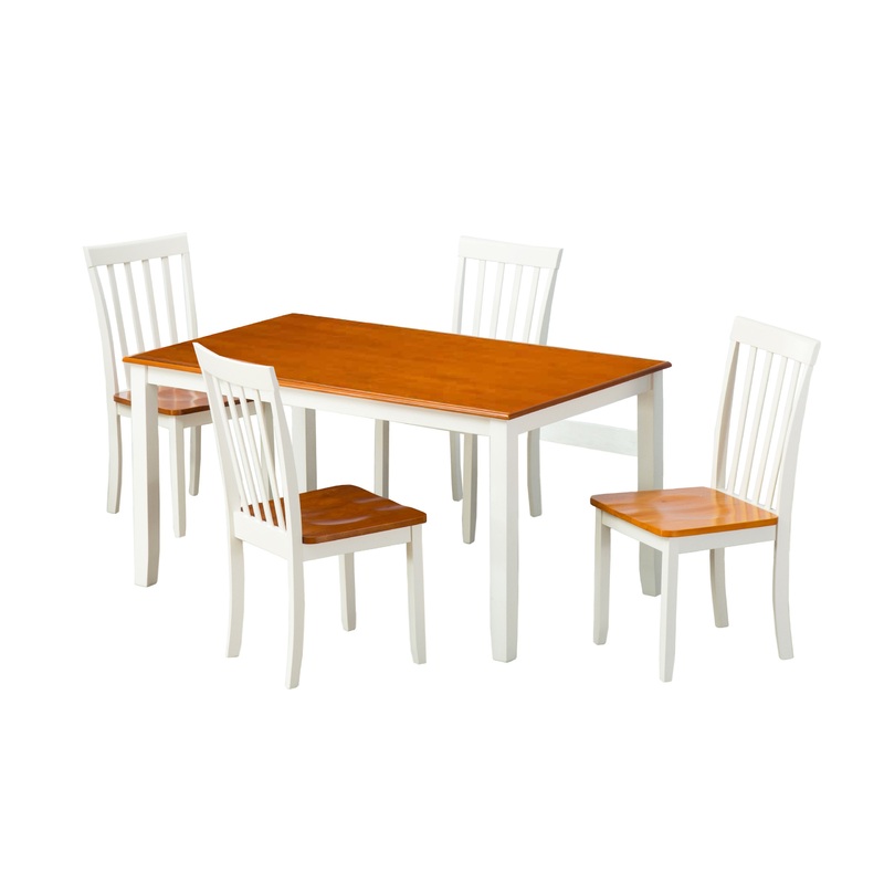 The 5-Piece Bloomington Dining Set is a reliable, versatile, and attractive option for your family. This five-piece set, which includes a dining table and four chairs, seats four. Add on two extra armchairs to comfortably seat an additional two people. Eng