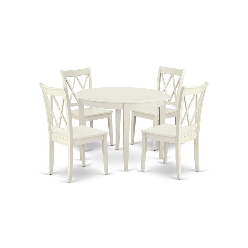 The BOCL5-LWH-W Kitchen set provides a distinct, sleek Linen White finish well-fitted to any sort of home decoration style. The fresh and clean lines dominate the cutting-edge design of the round kitchen dinette table. This small dining table require a very less space and it’d be a great choice if you are struggling with the issue of space in your house. This small kitchen set provides you with subtle and cleanly made dining chairs made from solid wood with a matching Linen White finish. Slender Double X back kitchen chairs finished in rich Linen White color with wood seats present fashionable and cozy seating. Made up of hardwood, the chair is stable and offers a sturdy finish. The chairs add elegance and class to any place you have placed them. The frame of the chairs are engineered to offer a great amount of comfort to your spine and thus reduce the chances of back pain. The matching color of the chair with the table brings a good contrast in the kitchen area. The standard shape, size and design makes the dining area significantly attractive. This contemporary, budget friendly, durable and comfortable dining set can be good choice if you are looking for a great dining time experience with your family or friends.