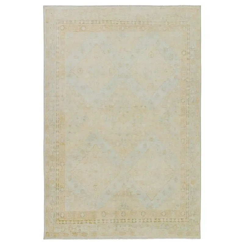 The Boheme collection revives vintage charm with its intricate, globally inspired designs and a beautifully weathered finish, exuding timeless elegance. Featuring a Persian-inspired diamond motif, the Winn area rug showcases a delicate color palette of light blue, pastel green, yellow, and cream, accentuated by a detailed border and subtle short fringe. Crafted from a blend of cotton, polyester, and plush chenille, this zero-pile rug offers a sleek yet durable surface, ideal for both high and low-traffic spaces. Versatile and stylish, it effortlessly enhances bedrooms, living rooms, dining areas, hallways, and entryways with its understated sophistication.