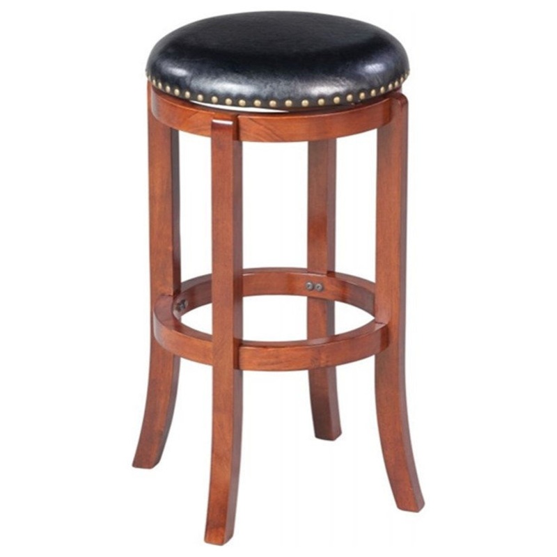 The Cordova Swivel Stool has the versatility, comfort, and style your home bar, game room, or kitchen needs. This backless stool comes in counter or bar height options, plus its available in three different finishes: Black, Cappuccino, or Cherry. The Cordova features solid rubberwood construction with strategically flared legs, adding enhanced balance and durability to the design. It swivels in a full circle, backed by the steel ball-bearing mechanism. High-density foam cushions the seat, which is upholstered in faux leather polyurethane. Simply choose your preferences at checkout to style the perfect stool for your space. Search for Boraams pub tables to create the complementary three-piece set to go along with your stool! This stool has been performance tested by leading worldwide testing facilities for your peace of mind.