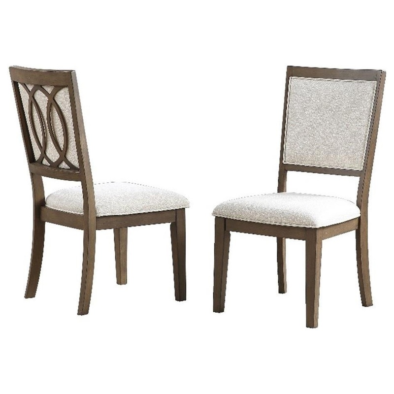 The elegant Bordeaux Side Chair has an upholstered cream seat and back that beautifully complements the toffee wood stain on the legs and back. Overlapping circles adorn the back making it as attractive from the back as the front, enhancing the overall look of the dining set. Use with the Bordeaux Dining Table (sold separately) or as a Desk, Guest or Office Chair. Your purchase includes two side chairs.
