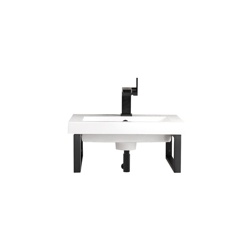 Minimalistic and bold, the design of the Boston floating console by James Martin Vanities will add a sleek look to any bathroom. The metal framing creates an open view allowing for the appearance of expanded space. The compelling design of this piece with its substantial frame not only improves stability but also provides a location from which is perfect for hanging towels or washcloths. The smooth white composite sink is a perfect match for this dynamic piece. The space saving design combines the multiple finishes of the metal structure to durable materials and compact dimensions, features found only in the most sophisticated bathroom.