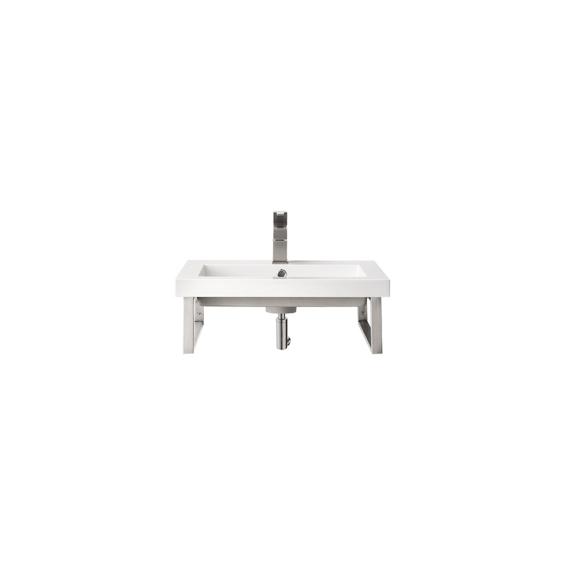Minimalistic and bold, the design of the Boston floating console by James Martin Vanities will add a sleek look to any bathroom. The metal framing creates an open view allowing for the appearance of expanded space. The compelling design of this piece with its substantial frame not only improves stability but also provides a location from which is perfect for hanging towels or washcloths. The smooth white composite sink is a perfect match for this dynamic piece. The space saving design combines the multiple finishes of the metal structure to durable materials and compact dimensions, features found only in the most sophisticated bathroom.