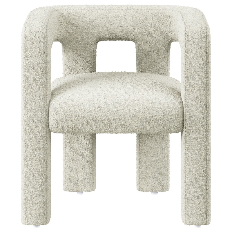 Sleek, avant-garde, and oozing panache, this modern minimalist barrel accent side chair transforms any space into an interior design fantasy. Whether it holds court in a sophisticated kitchen, graces the dining room, rests in a tranquil bedroom, or adds pizazz to a cozy living room, it’s a testament to geometric brilliance and simplicity. This chair is a sensory indulgence, thanks to its boucle fabric, echoing the cozy embrace of wool or mohair, but with a unique graininess that’s cushy and simply delightful.