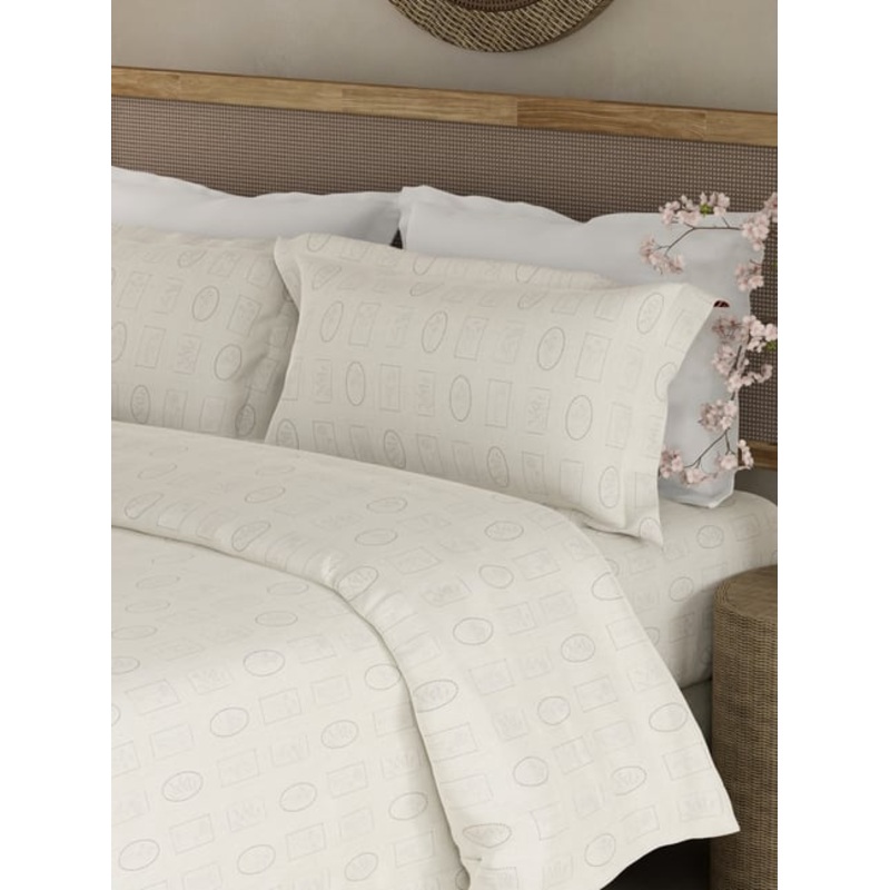 Boutique Living Cottage Garden White & Grey Cotton 300 TC King Bedsheet with 2 Pillow Covers