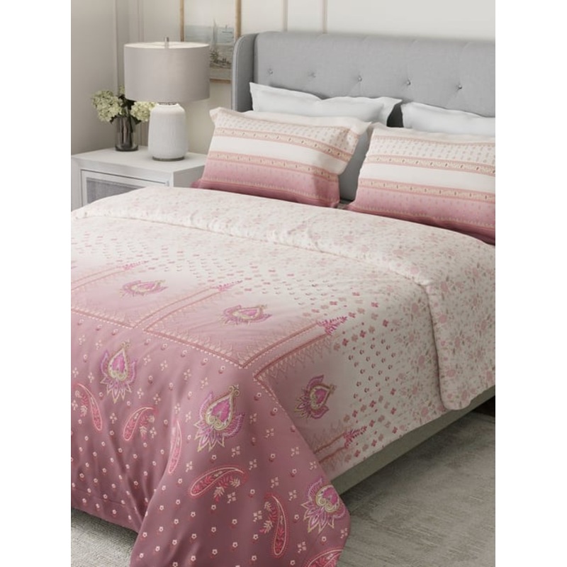 Boutique Living Gardenia Augusta Pink & White Cotton Ethnic 300 TC King Bedsheet with 2 Pillow Cover