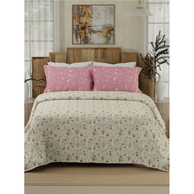 Boutique Living Gardenia Augusta Pink & White Cotton Floral 300 TC King Bedsheet with 2 Pillow Cover