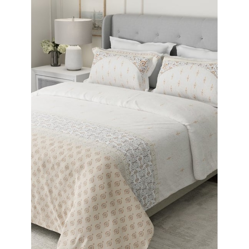 Boutique Living Gardenia Augusta White & Beige Cotton Ethnic 300TC King Bedsheet with 2 Pillow Cover