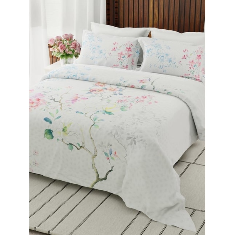 Indulge in the exquisite comfort of the Boutique Living Gardenia Augusta 100 percent cotton 300 tc floral super king bedsheet, designed to transform your bedroom into a serene retreat. Crafted from premium 100 percner cotton with a luxurious 300 thread count, this bedsheet offers unmatched softness and durability. The delicate floral micro-prints add a touch of sophistication, blending refined aesthetics with everyday practicality. Inspired by the beauty of nature, the Gardenia Augusta collection brings the tranquility of meadows into your home.